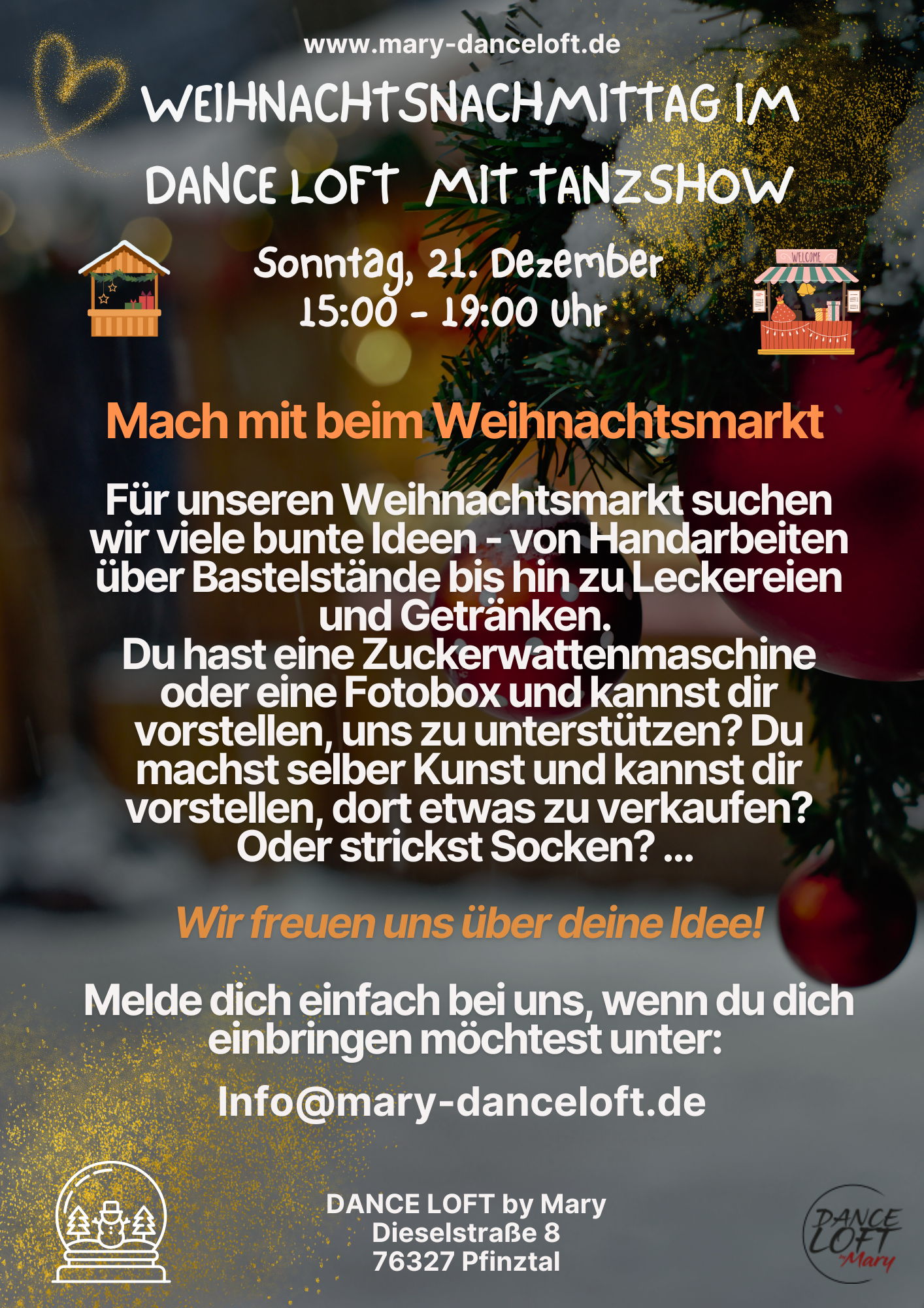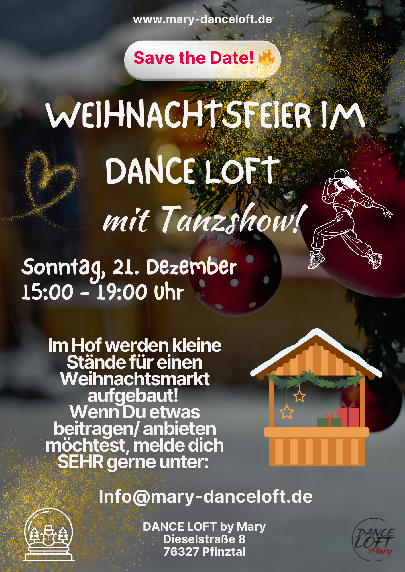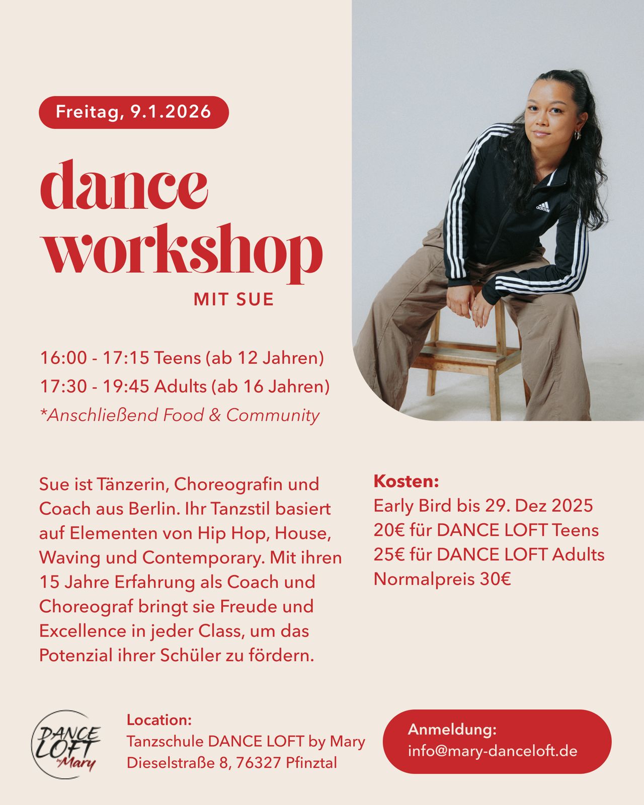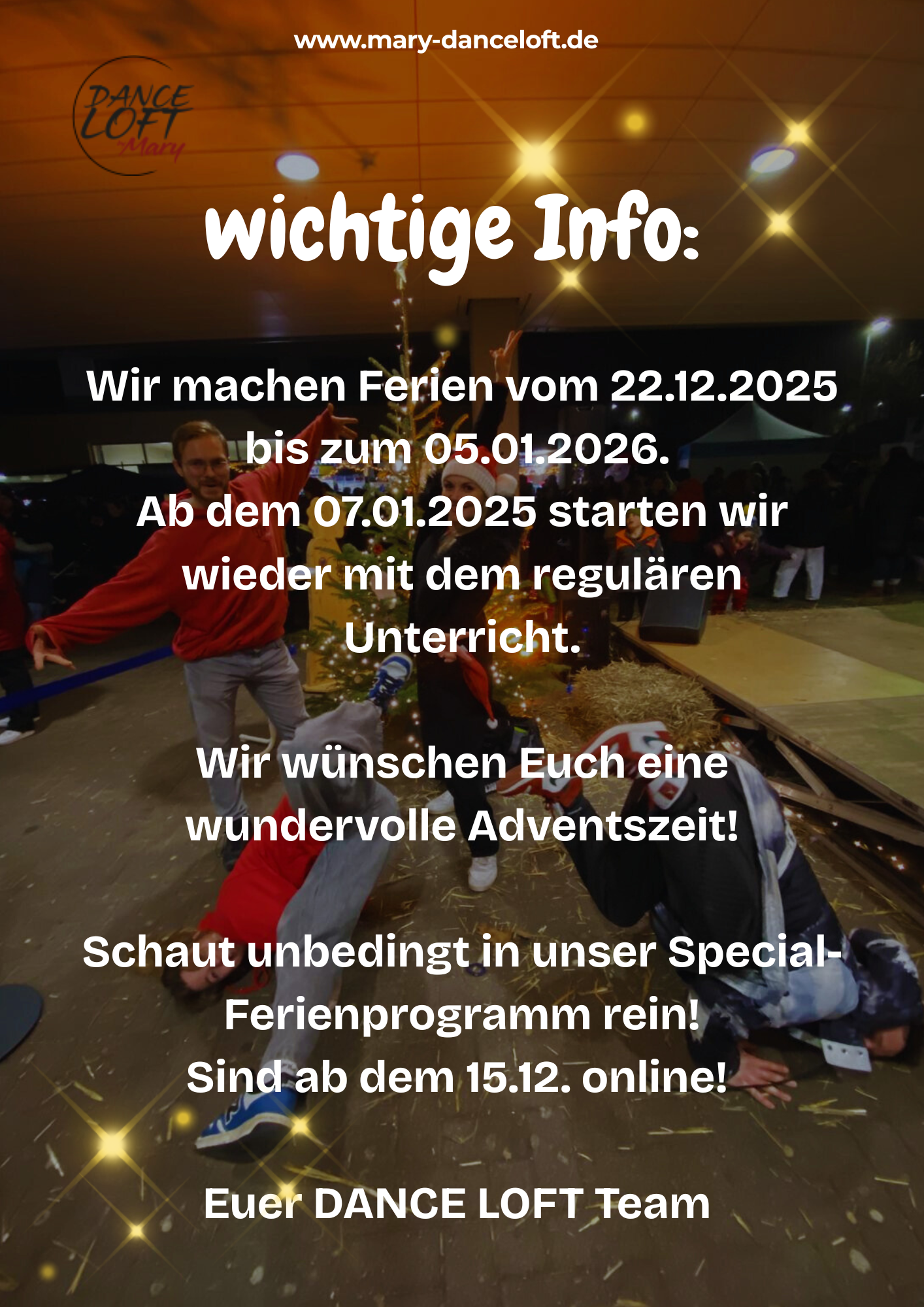 Mit meinem "DANCE LOFT" möchte ich den Menschen den Raum bieten, ihrer Kreativität und ihren Gefühlen, durch die Musik und den Tanz, Ausdruck zu verleihen.